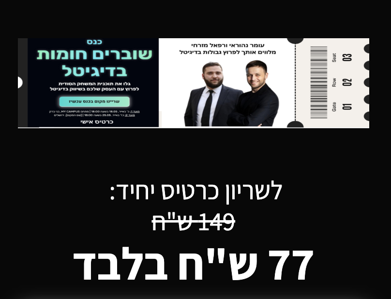 כנס “שוברים חומות בדיגיטל” – כרטיס יחיד *ללקוחות רפאל*